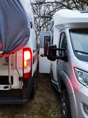 Nous rentrons pour un souper en famille et nous garons aux mêmes emplacements. Alex nous colle tellement que nous ne pouvons plus ouvrir les portes simultanément.