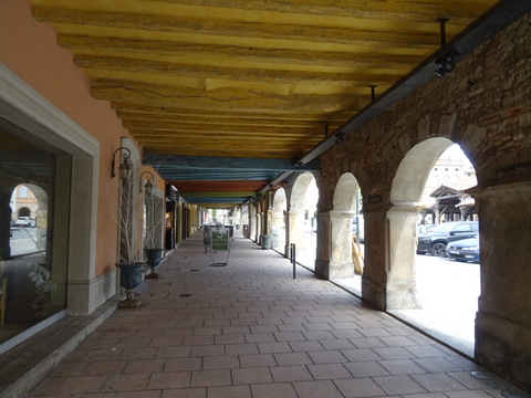 De même pour la place aux arcades sous lesquelles nous déambulons quelques instants.