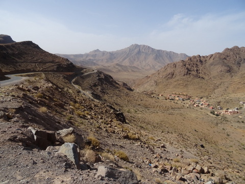 Nous quittons cette ville sans intérêt et reprenons la route pour 99 km en direction de Tafraoute. Les paysages, s'ils restent jolis, n'ont rien à voir avec ceux des jours précédents.